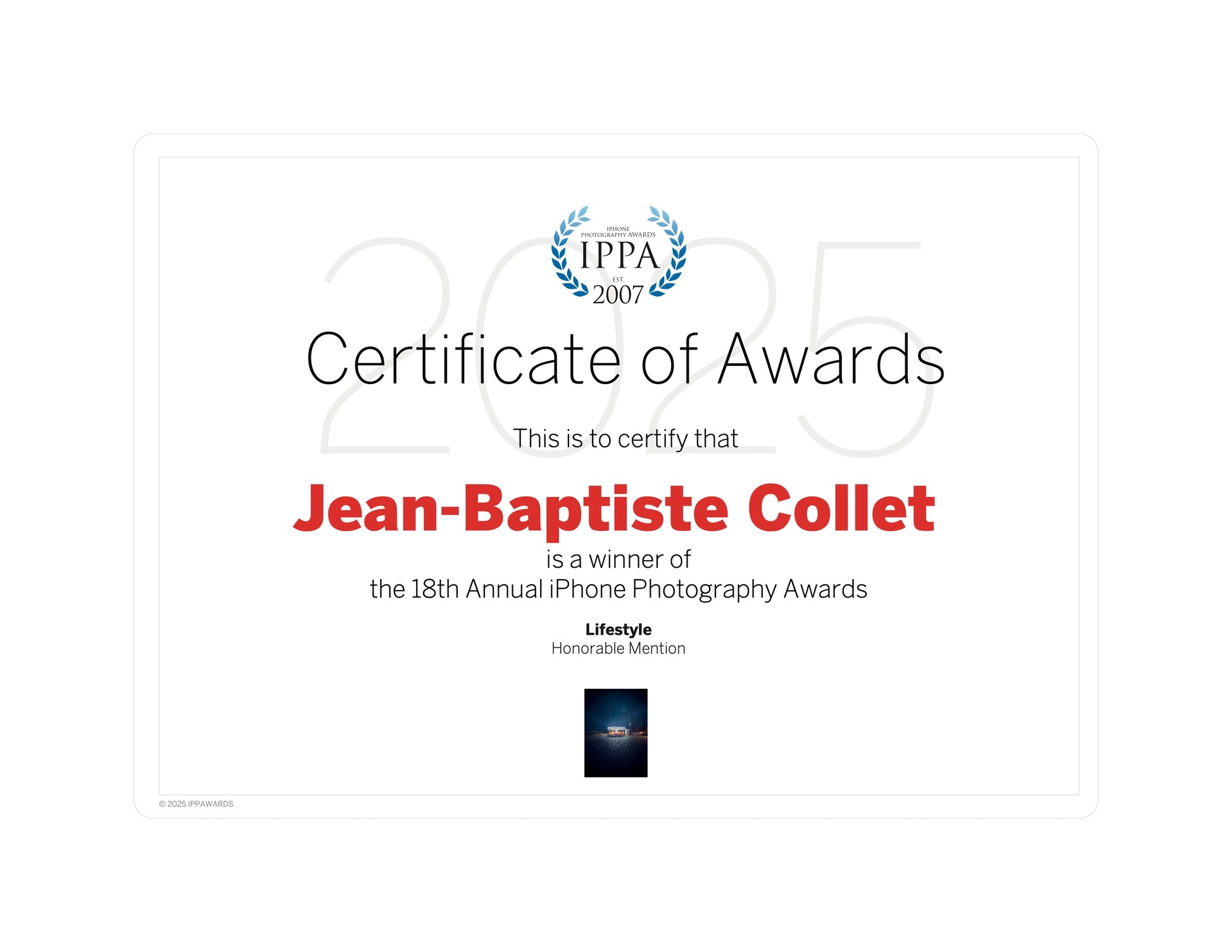 Cette photo a remporté un prix au concours international iPhone Photography Awards, dans le registre Lifestyle en 2025.